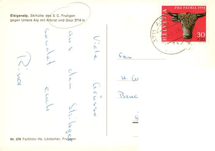 13920948 alte Postkarte Frutigen BE Elsigenalap Skihuette mit Untere Alp Albrist und Gsuer postalisch gelaufen Erhaltung siehe scans [FriedD77] KatCode: 11470060170204