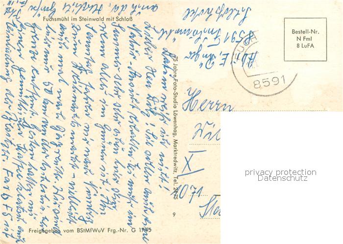 73685781 alte Postkarte Fuchsmuehl Fliegeraufnahme mit Schloss postalisch gelaufen Erhaltung siehe scans [WerneD78] KatCode: 11110009377119
