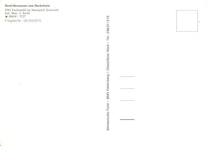 73885250 Fuchsmuehl Hotel Restaurant zum Hackelstein postalisch nicht gelaufen Fliegeraufnahme Erhaltung siehe scans [WerneD78] KatCode: 11110009377119
