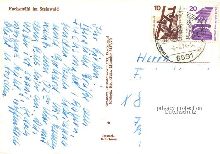 74025882 alte Postkarte Fuchsmuehl Panorama Steinwald postalisch gelaufen Fliegeraufnahme Erhaltung siehe scans [FriedD77] KatCode: 11110009377119