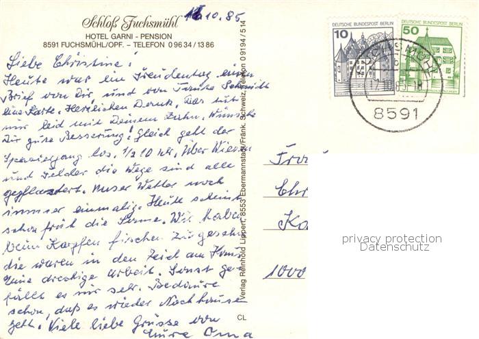 73765643 alte Postkarte Fuchsmuehl Schloss Fuchsmuehl Details postalisch gelaufen Erhaltung siehe scans [WerneD78] KatCode: 11110009377119