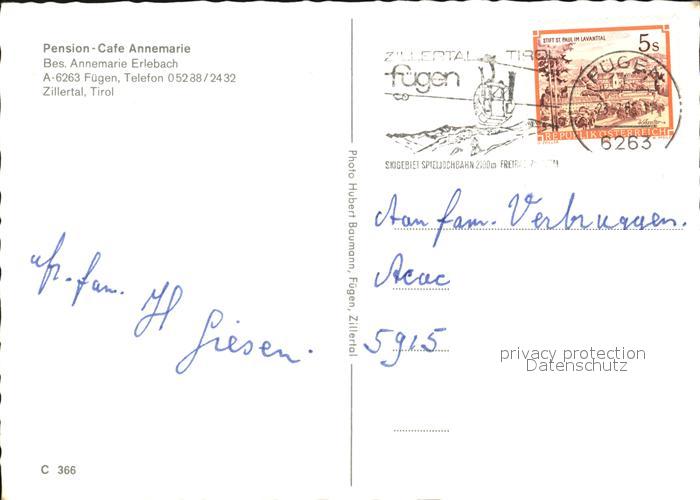 72417676 alte Postkarte Fuegen Cafe Annemarie Terrasse postalisch gelaufen Erhaltung siehe scans KatCode: 11390335070909