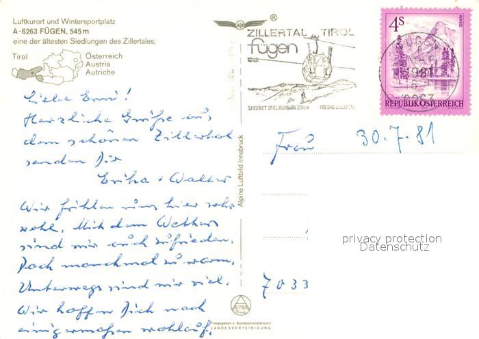 73046363 alte Postkarte Fuegen Fliegeraufnahme postalisch gelaufen Erhaltung siehe scans [KathaD81] KatCode: 11390335070909