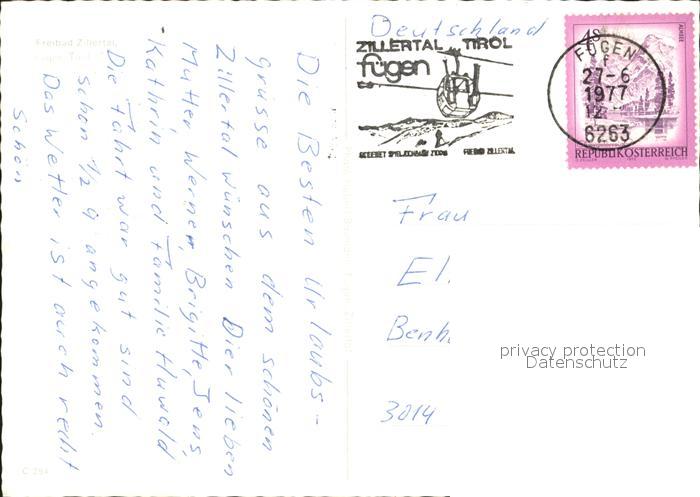 72108380 alte Postkarte Fuegen Freibad Zillertal postalisch gelaufen Erhaltung siehe scans KatCode: 11390335070909