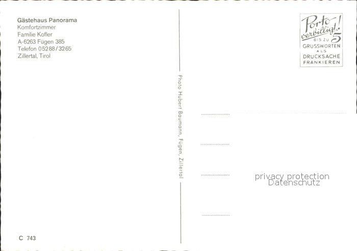 42923866 alte Postkarte Fuegen Gaestehaus Panorama postalisch gelaufen Erhaltung siehe scans [WerneD48] KatCode: 11390335070909