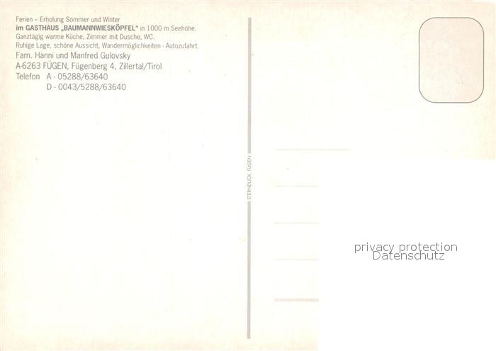 12975330 Fuegen Gasthaus Baumannwieskoepfl postalisch nicht gelaufen Erhaltung siehe scans [NatalD47] KatCode: 11390335070909