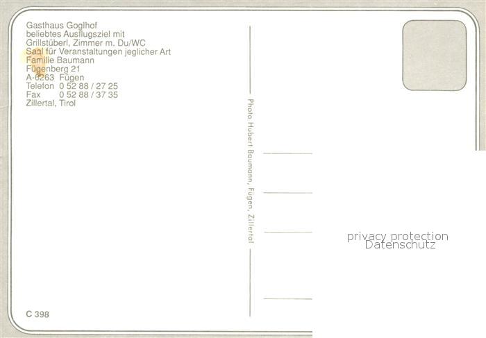 73718052 Fuegen Gasthaus Goglhof Gastraeume Terrasse postalisch nicht gelaufen Erhaltung siehe scans [WerneD78] KatCode: 11390335070909