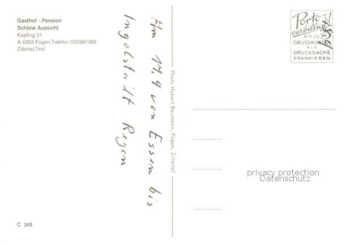 13191558 Fuegen Gasthof-Pension Schoene Aussicht postalisch nicht gelaufen Erhaltung siehe scans [PaolaD17] KatCode: 11390335070909
