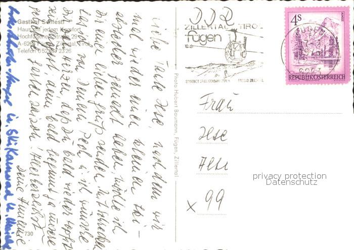 71866369 alte Postkarte Fuegen Gasthof Schiestl postalisch gelaufen Erhaltung siehe scans KatCode: 11390335070909
