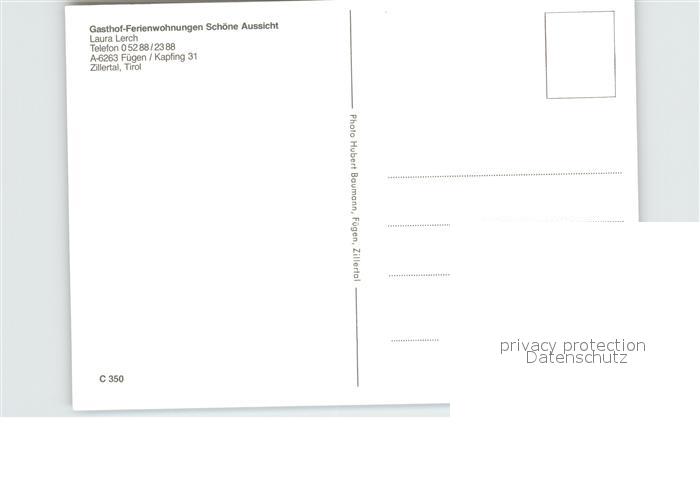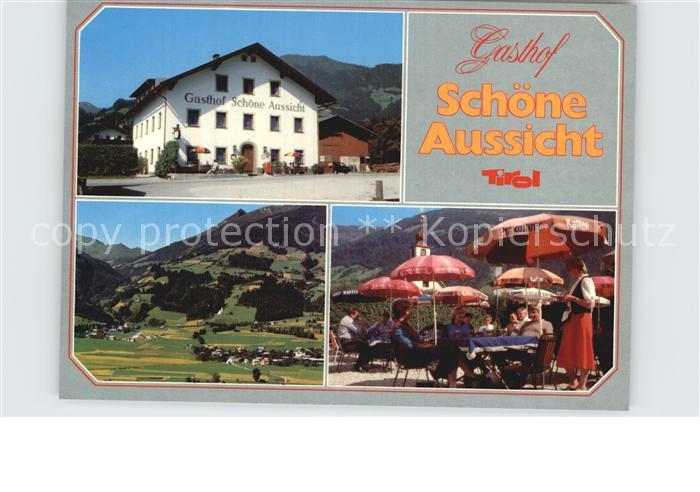 72581198 Fuegen Gasthof Schoene Aussicht Terrasse Panorama postalisch nicht gelaufen Erhaltung siehe scans [FriedD77] KatCode: 11390335070909