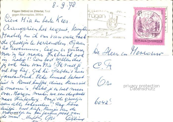 72498510 alte Postkarte Fuegen gegen Ahornspitze Zillertal postalisch gelaufen Erhaltung siehe scans KatCode: 11390335070909