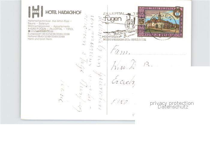 72482540 alte Postkarte Fuegen Hotel Haidachhof postalisch gelaufen Erhaltung siehe scans KatCode: 11390335070909