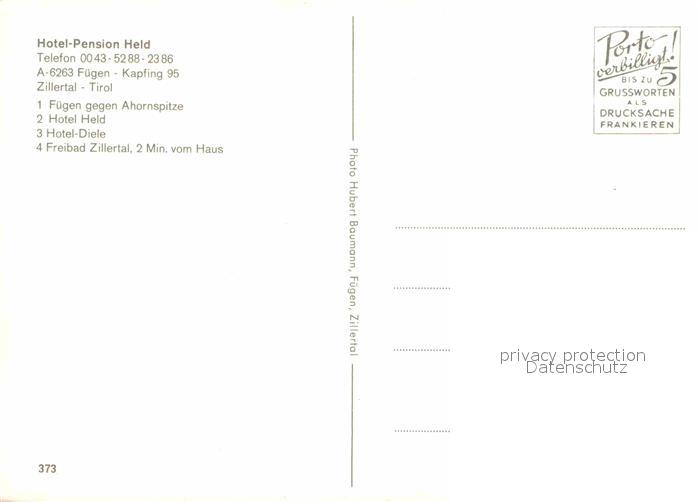12603928 Fuegen Hotel Pension Held Hotel-Diele Freibad postalisch nicht gelaufen Erhaltung siehe scans [LiesaD40] KatCode: 11390335070909