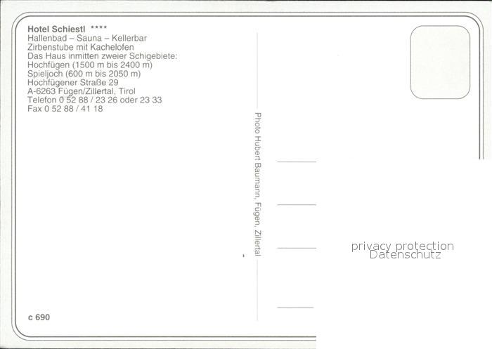72479279 Fuegen Hotel Schiestl im Zillertal postalisch nicht gelaufen Erhaltung siehe scans KatCode: 11390335070909