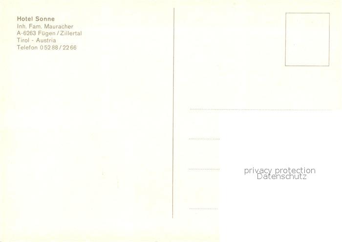 73588250 Fuegen Hotel Sonne Restaurant Bar postalisch nicht gelaufen Erhaltung siehe scans [FriedD77] KatCode: 11390335070909