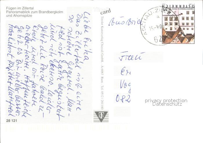 72517937 alte Postkarte Fuegen mit Brandbergkolm und Ahornspitze postalisch gelaufen Erhaltung siehe scans KatCode: 11390335070909