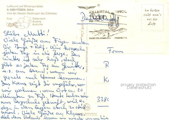 73526106 alte Postkarte Fuegen mit Sonnwendgebirge Fliegeraufnahme postalisch gelaufen Erhaltung siehe scans [FriedD77] KatCode: 11390335070909