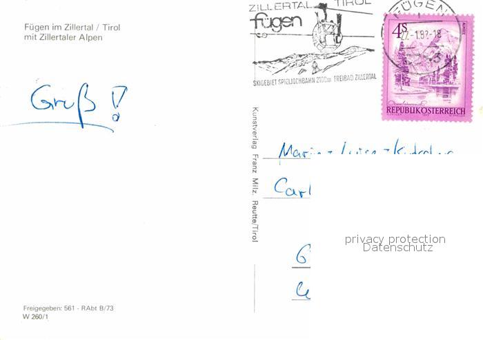 72748208 alte Postkarte Fuegen Panorama mit Zillertaler Alpen Fliegeraufnahme postalisch gelaufen Erhaltung siehe scans [FriedD77] KatCode: 11390335070909