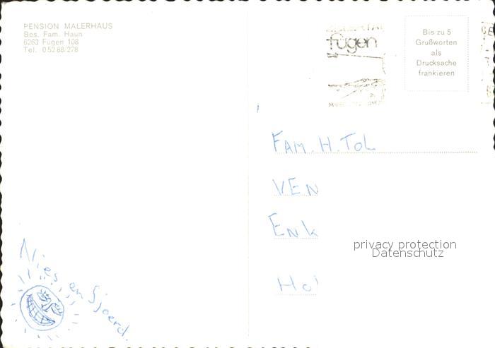 72298766 alte Postkarte Fuegen Pension Malerhaus postalisch gelaufen Erhaltung siehe scans KatCode: 11390335070909