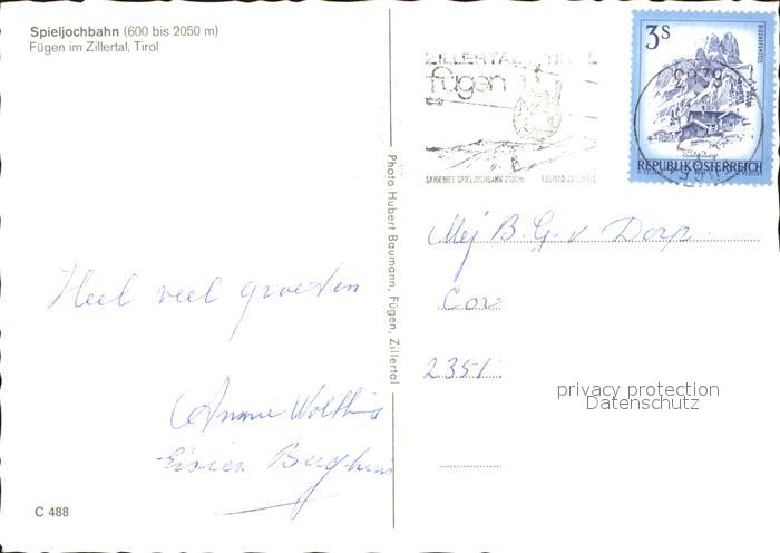 71915768 alte Postkarte Fuegen Sieljochbahn postalisch gelaufen Erhaltung siehe scans KatCode: 11390335070909