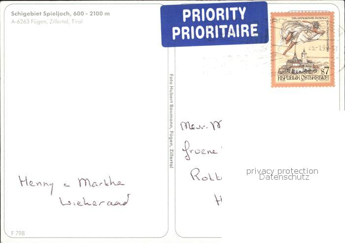 72411889 alte Postkarte Fuegen Skigebiet Spieljoch Sessellift postalisch gelaufen Erhaltung siehe scans KatCode: 11390335070909
