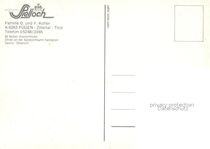 13188266 Fuegen Sporthotel Spieljoch postalisch nicht gelaufen Erhaltung siehe scans [NatalD47] KatCode: 11390335070909