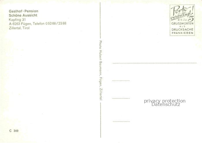 74153170 Fuegen Zillertal Tirol AT Gasthof Pension Schoene Aussicht Kirche Panorama postalisch nicht gelaufen Erhaltung siehe scans [WerneD78] KatCode: 11390335070909
