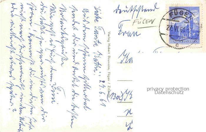 74121892 Fuegen Zillertal Tirol AT Panorama Ortsansicht mit Kirche postalisch gelaufen Erhaltung siehe scans [FriedD77] alte Postkarte Frie Katcode 11390335070909