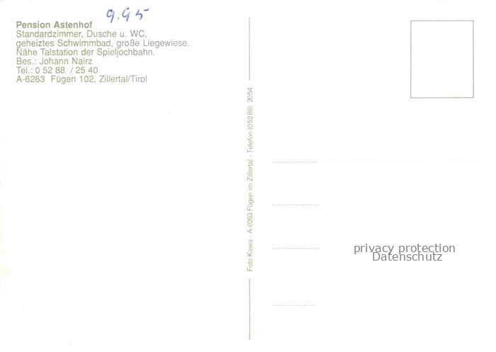 74096377 Fuegen Zillertal Tirol AT Pension Astenhof postalisch nicht gelaufen Erhaltung siehe scans [WerneD78] KatCode: 11390335070909