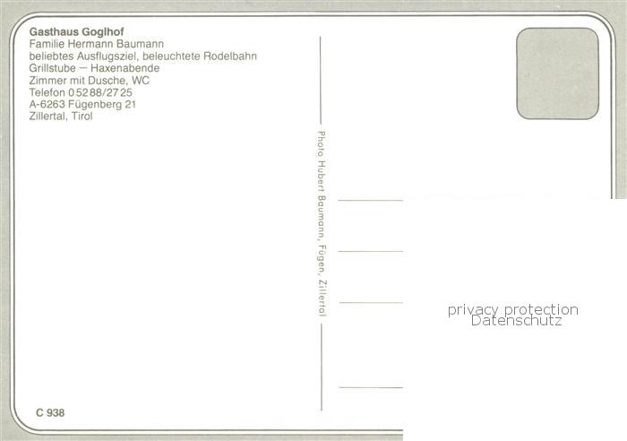 73760305 Fuegenberg Gasthaus Goglhof Gaststube Rodeln postalisch nicht gelaufen Erhaltung siehe scans [WerneD78] KatCode: 11390335070910