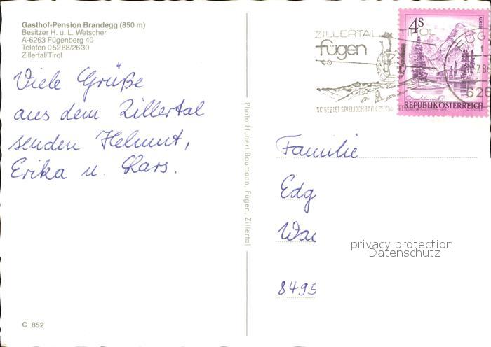71901807 alte Postkarte Fuegenberg Gasthaus Pension Brandegg postalisch gelaufen Erhaltung siehe scans KatCode: 11390335070910