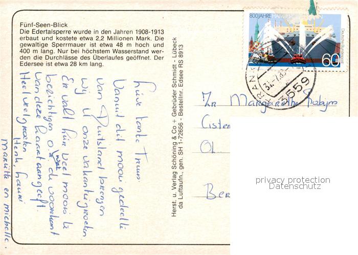 73130171 alte Postkarte Fuenfseen Fuenf-Seen-Blick Fliegeraufnahme postalisch gelaufen Erhaltung siehe scans [PaolaD17] KatCode: 11110013056076