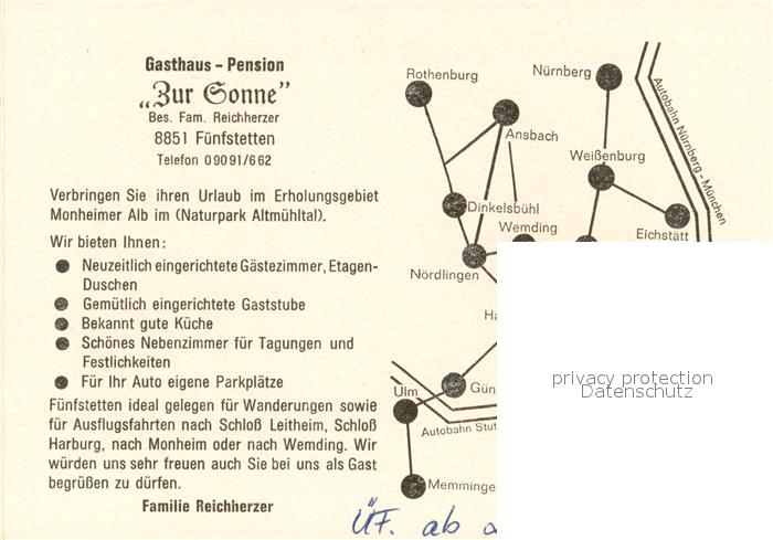 73650817 Fuenfstetten Gasthof Pension Zur Sonne Gastraeume postalisch nicht gelaufen Werbekarte (keine Postkarte) Erhaltung siehe scans [WerneD78] KatCode: 11110009779148