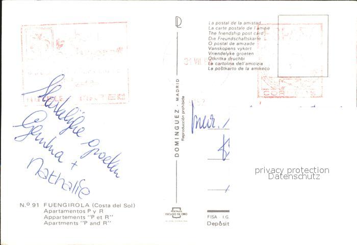 old postcard Fuengirola Apartments P und R postalisch gelaufen Erhaltung siehe scans
