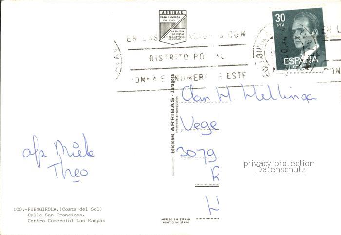 old postcard Fuengirola Calle San Francisco postalisch gelaufen Erhaltung siehe scans