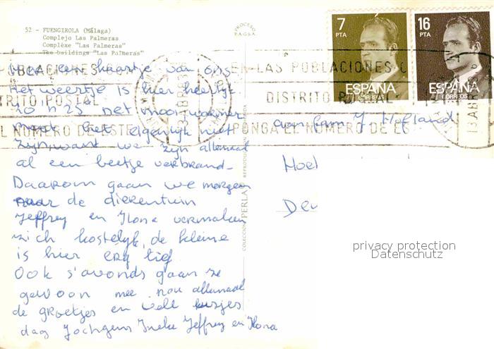 old postcard Fuengirola Complejo Las Palmeras postalisch gelaufen Erhaltung siehe scans [FriedD77]