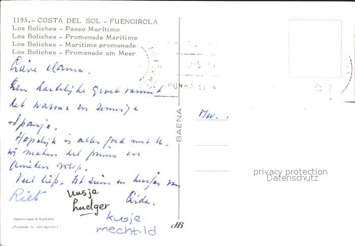 old postcard Fuengirola Fliegeraufnahme Strand Los Boliches postalisch gelaufen Erhaltung siehe scans