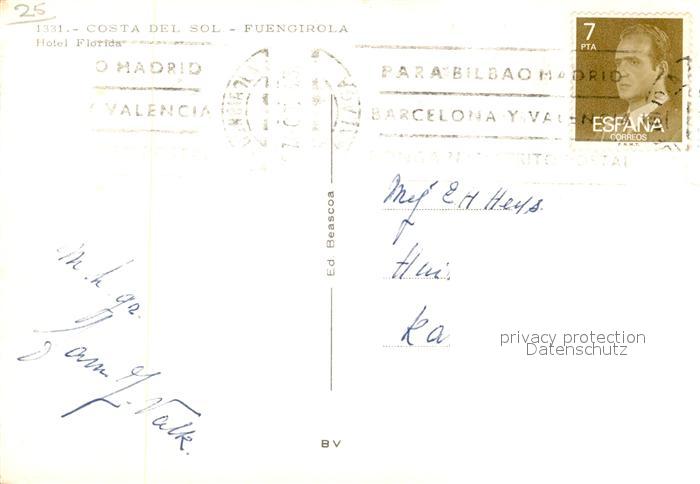 old postcard Fuengirola Hotel Florida postalisch gelaufen Erhaltung siehe scans [KathaD81]