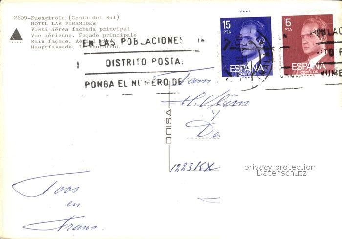 old postcard Fuengirola Hotel Las Piramides postalisch gelaufen Erhaltung siehe scans