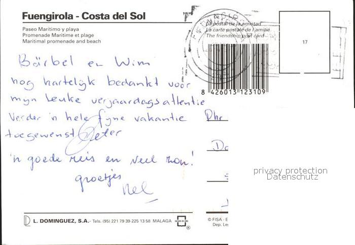 old postcard Fuengirola Maritimal promenade beach postalisch gelaufen Erhaltung siehe scans
