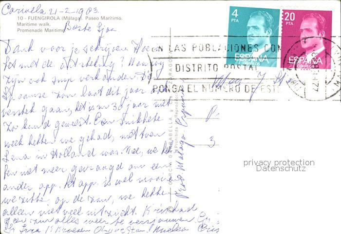 old postcard Fuengirola Paseo Maritimo postalisch gelaufen Erhaltung siehe scans