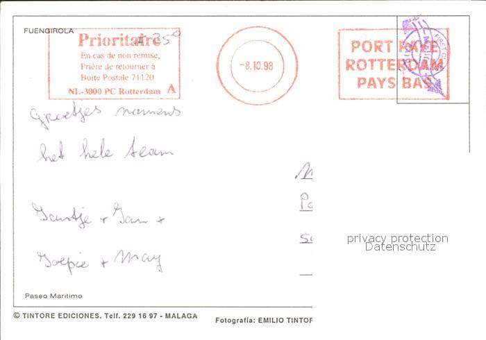 old postcard Fuengirola Paseo Maritimo postalisch gelaufen Erhaltung siehe scans