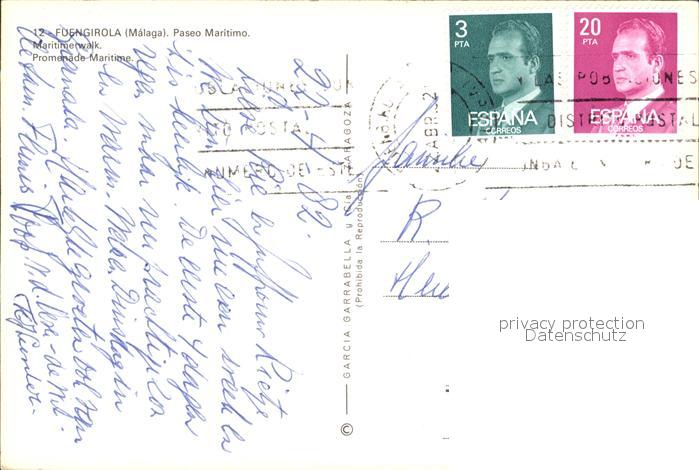 old postcard Fuengirola Paseo Maritimo postalisch gelaufen Erhaltung siehe scans