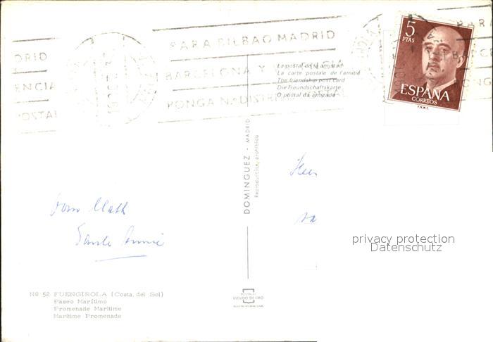 old postcard Fuengirola Paseo Maritimo Promenade postalisch gelaufen Erhaltung siehe scans