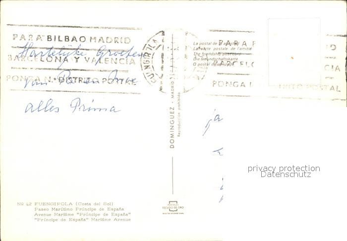 old postcard Fuengirola Principe de Espana postalisch gelaufen Erhaltung siehe scans
