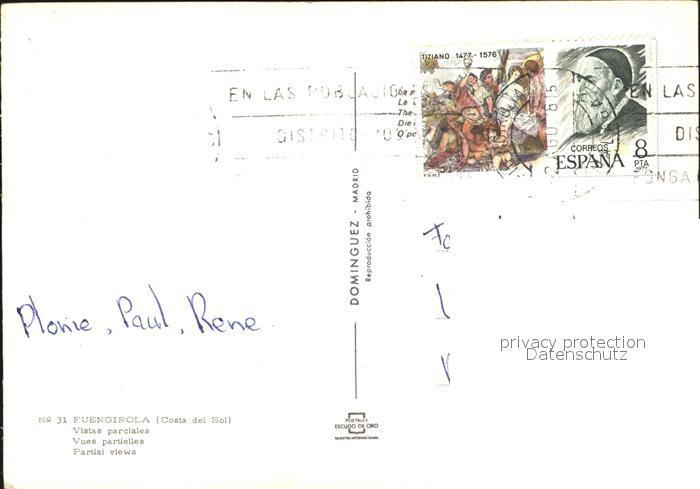 old postcard Fuengirola Promenade Segelboot Strand postalisch gelaufen Erhaltung siehe scans [AndreD76]