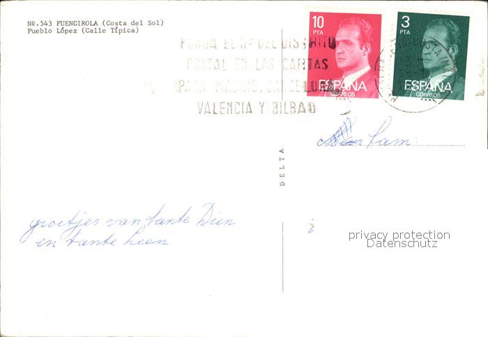 old postcard Fuengirola Pueblo Lopez Calle tipica postalisch gelaufen Erhaltung siehe scans