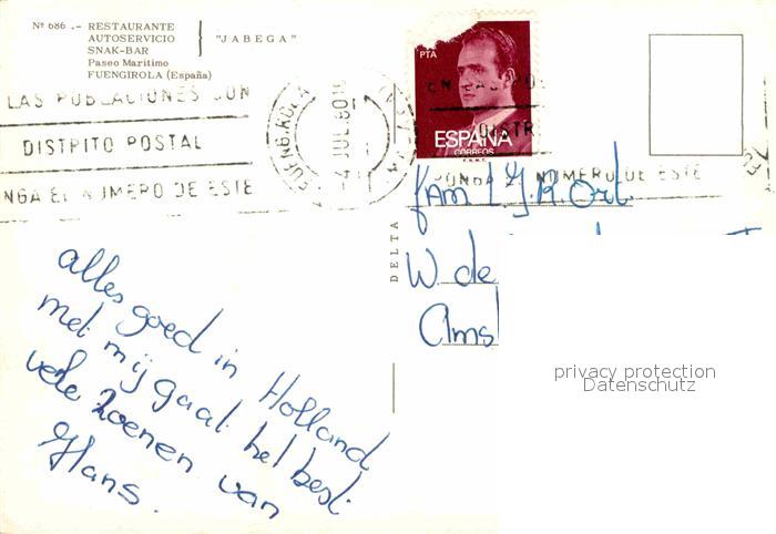 old postcard Fuengirola Restaurante Autoservicio Snak-Bar postalisch gelaufen Erhaltung siehe scans [NatalD47]