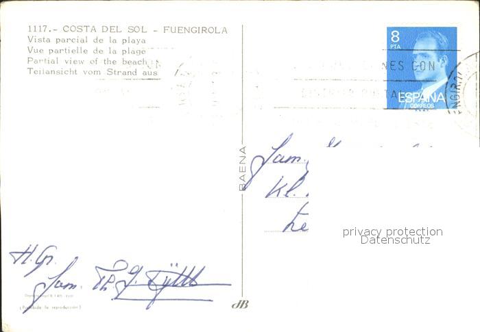 old postcard Fuengirola Teilansicht vom Strand aus postalisch gelaufen Erhaltung siehe scans