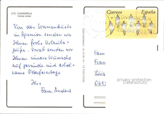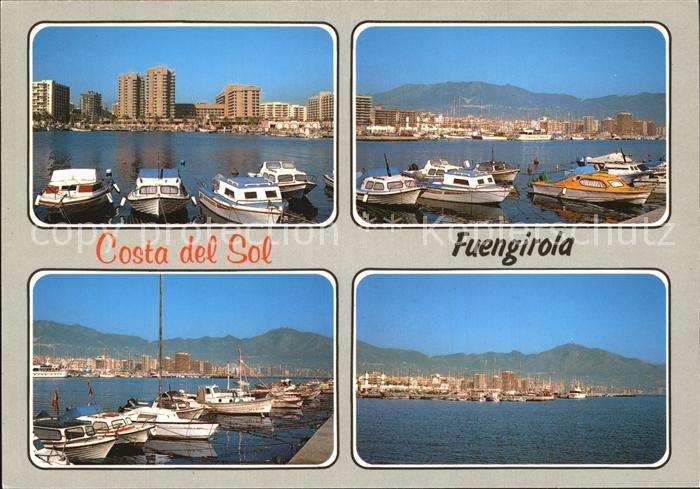 old postcard Fuengirola Varias vistas Ansicht vom Meer aus Hafen postalisch gelaufen Erhaltung siehe scans